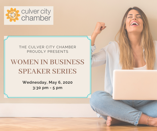 On behalf of the Culver City Chamber and the Women in Business Council, we would like to invite you to join us as in the first virtual Women in Business Council Speaker Series on Wednesday, May 6 from 3:30 pm to 5 pm via Zoom.